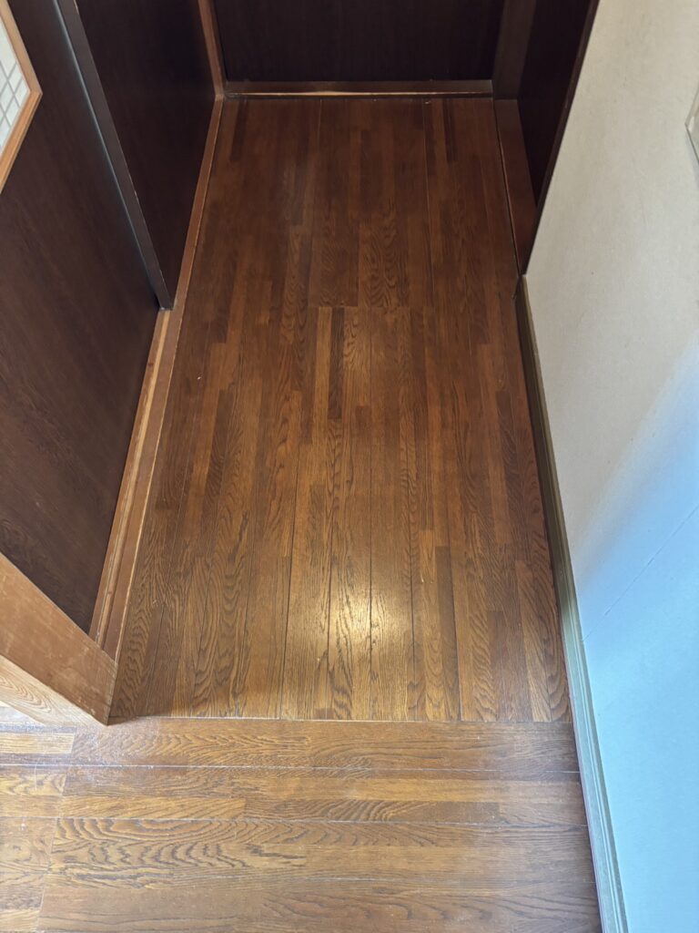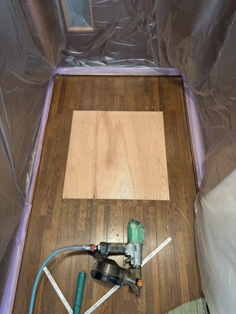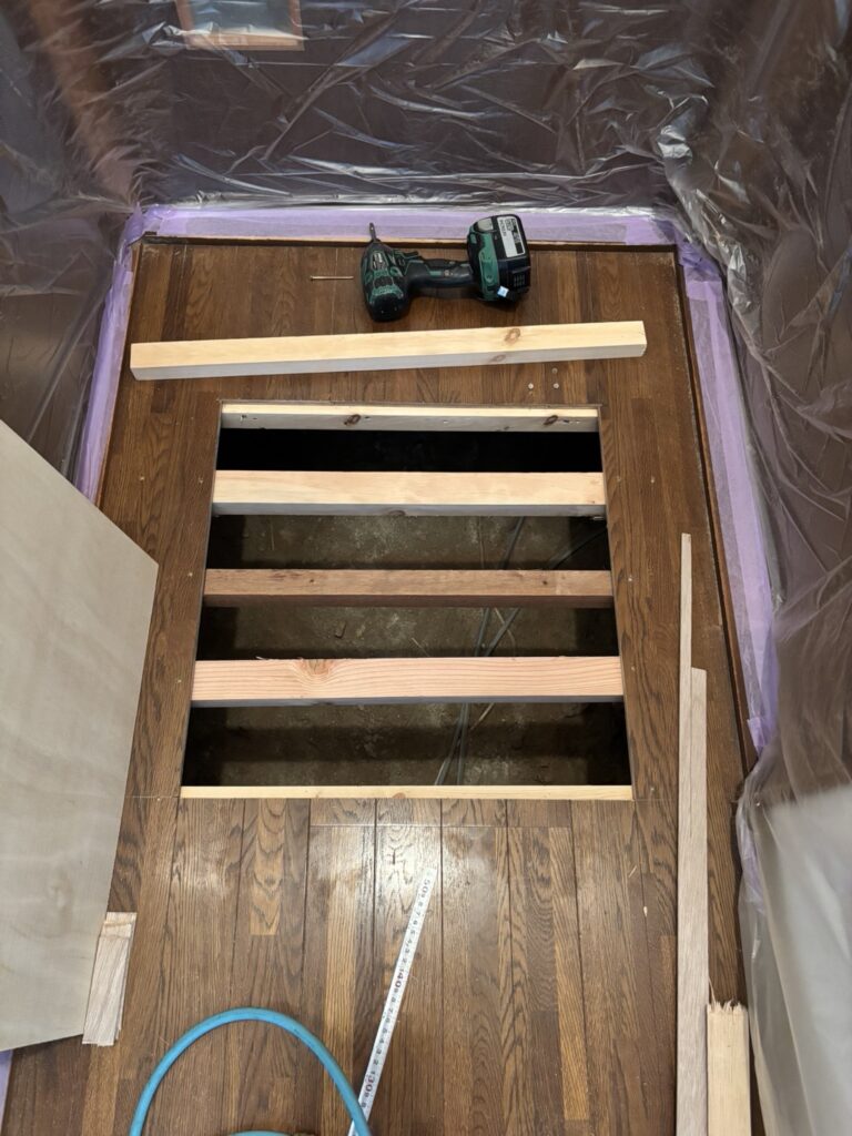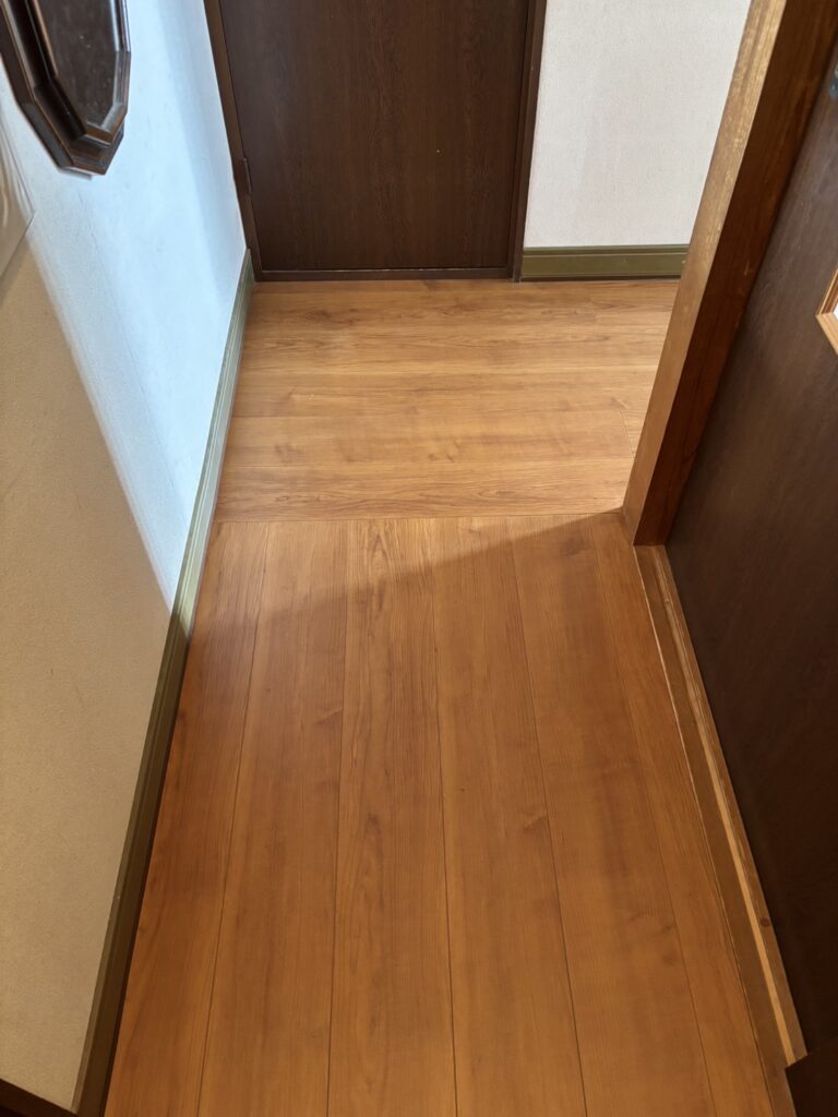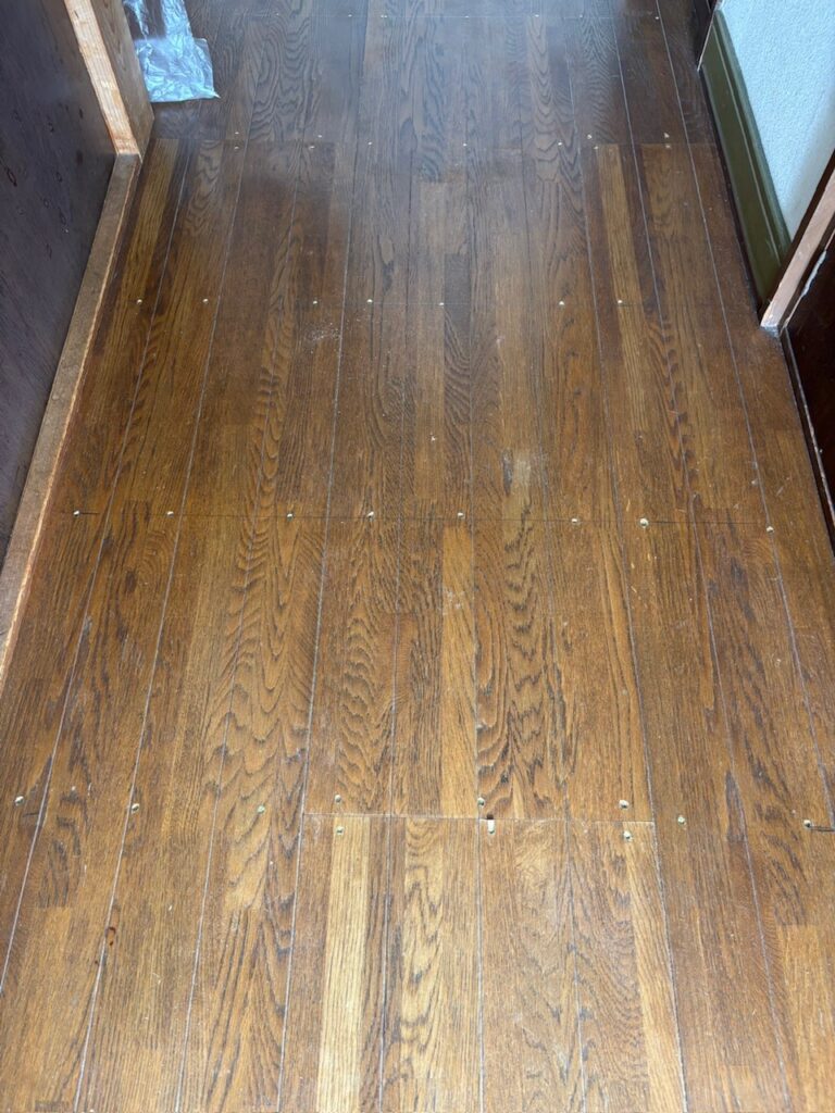 既存の床が歩くとフワフワしてる箇所を補強し、