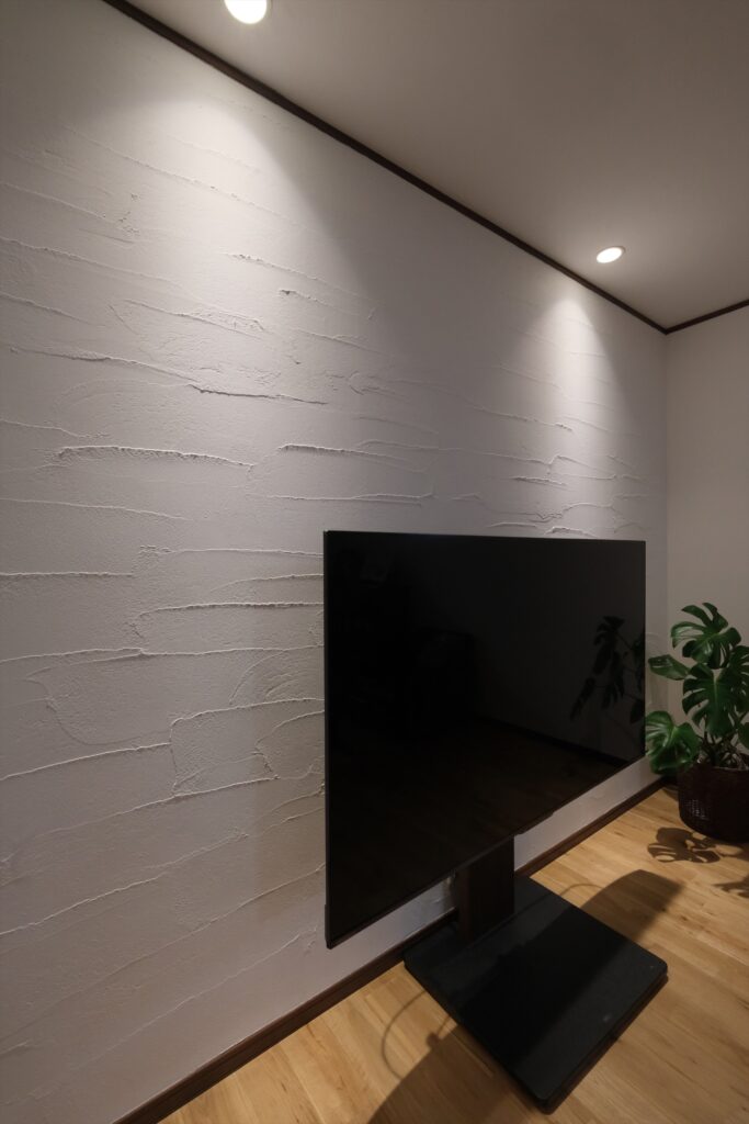 リビングの壁は左官さん手塗りの珪藻土です。
