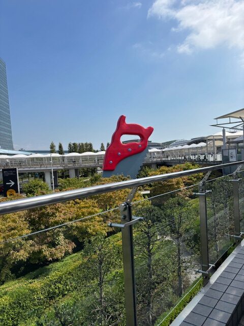 東京ビッグサイトのターミナル入口にある高さ15.5mの巨大な鋸の彫刻。