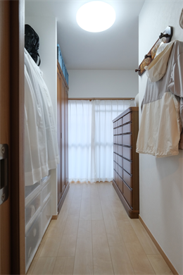 以前はそれぞれ分離して使いにくかったダイニングキッチンとリビングを、縦長のLDKにまとめました。 リビングの一部を完全に独立した収納空間に作り替え、娘様のタンスの寸法に合わせ、リビング側に出る壁の奥行を調整。前面ラインの揃った使いやすいウォークインクローゼットになりました。 リビング側もキュビオスの壁面TVボードがジャストサイズでぴったり納まっています。 調理家電が収まるカップボードも採用して、物が片付けやすくなりました。 サッシは全て内窓を取り付けて断熱性能をアップさせ、敷居の無い上吊り引き戸は床の段差もなくなる仕様で、将来に亘ってお母様 も快適に暮らせるようになりました。