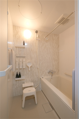 浴室にはカウンター、ミラー、固定棚などは取り付けず、全てマグネットタイプの収納に。 とても掃除がしやすく毎日楽々。