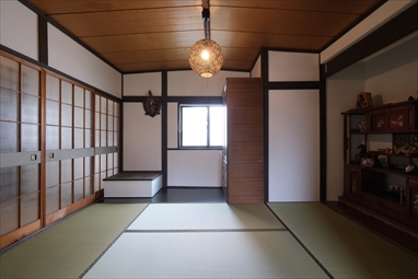 子供時代から感じていた道路際の不安と不満を、今回のリフォームで解消でき、安心して暮らせることになりました。 玄関を安全な駐車場側に移動したこと、新しく取り入れたサッシのおかげで、 道路からの騒音や視線が気にならなくなったことは、大きな変化で心が落ち着きました。 大好きなピアノを思い切り弾けるようになったのも嬉しいポイントです。 無垢の床材と漆喰の壁は、手触りや足触りも心地よく、空気を柔らかく清らかにしてくれる気がします。 とても居心地の良いリビングになりました。 私たちの思いを汲み取って、しっかりと形にしてくれたことに感謝しています。 得に左官職人さんの芸術的なアクセント壁と現しの梁は、家族のお気に入りで、 「並んだ梁や間接照明がオシャレ!」と訪れる人々から高評価をいただき、我が家の自慢になっています。 子供がまだ小さいので、現在は三人で和室で寝起きしていますが、新しい畳の香りに包まれて、 毎日まるで旅館で目覚めたような気分を楽しんでいます。